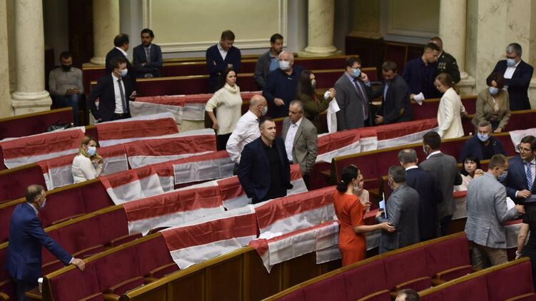 Напомним, 1 сентября нардепы от "Оппоплатформы" вывесили в Раде государственный флаг Беларуси.