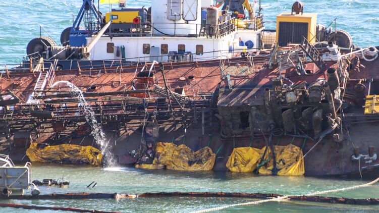 "Утечка нефтепродуктов произошла из-за того, что с судном продолжают проводить работы по его поднятию и стабилизации. Госэкоинспекция сможет подсчитать убытки за ущерб окружающей среде только после того, как танкер Delfi окончательно уберут из акватории Черного моря", - написал он.