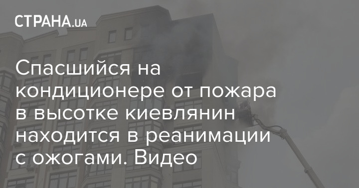Спасшийся на кондиционере от пожара в высотке киевлянин находится в реанимации с ожогами. Видео