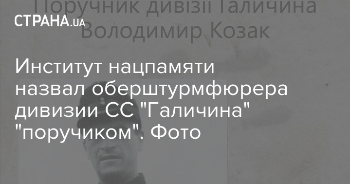 Сайт Украинского института национальной памяти опубликовал снимок оберштурмфюрера нацистской дивизии СС "Галичина" Владимира Козака, награжденного немецким Железным крестом, назвав его "поручиком дивизии Галичина".