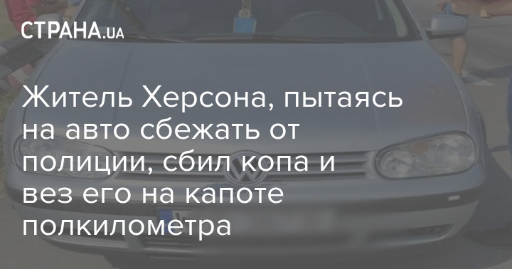 В Херсоне мужчина пытался скрыться на автомобиле от полицейских, которые пришли проводить у него дома обыск, сбил одного из оперативников и полкилометра вез его на капоте. ОБ этом сообщается на сайте Нацполиции