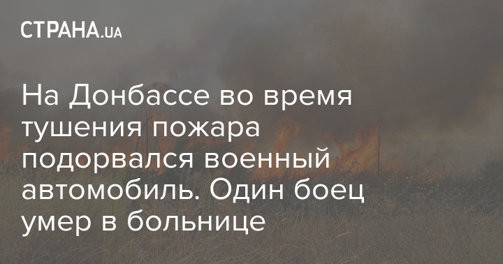 В воскресенье, 6 сентября, во время тушения пожара на Донбассе военный автомобиль подорвался на неизвестном взрывном устройстве, в результате чего двое военных были ранены. Сегодня один из них скончался.