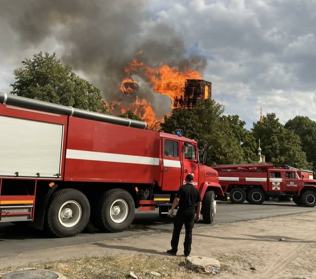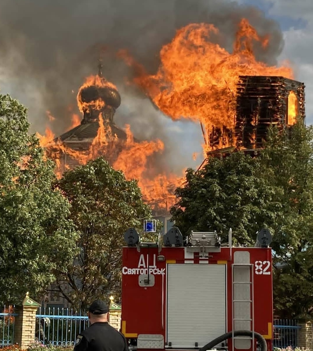 Ранее сообщалось, что 8 сентября в 13:58 в городе Лиман возник пожар в деревянной церкви Петра и Павла, чей размер 20х30х11 метров.