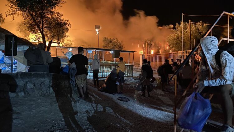 Тысячи беженцев остались без крова из-за пожара на острове Лесбос. Фото: Twitter/@th_voulgarakis