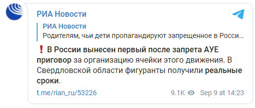 Напомним, что в понедельник, 17 августа, Верховный суд России признал движение АУЕ экстремистской организацией.