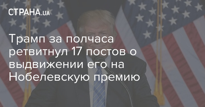 После того, как президента США Дональда Трампа номинировали на Нобелевскую премию мира, он восторженно за полчаса ретвитнул 17 сообщений об этом.