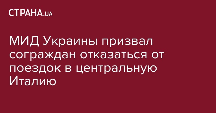 Министерство иностранных дел Украины рекомендовало согражданам не посещать центральные регионы Италии. Это связано с последствиями разрушительного землетрясения, случившегося там в среду, 24 августа и затронувшего итальянские провинции Риети, Асколи-Пичено и Перуджа.