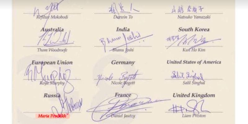 Мария возглавляла студенческую делегацию России на саммите Большой Восьмерки в 2010 году. Под резолюцией есть ее подпись.