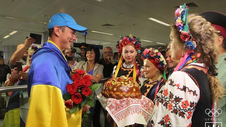 Олимпийского чемпиона в "Борисполе" встретила армия болельщиков с караваем