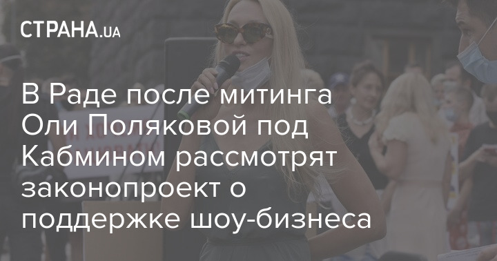 Верховная Рада, после митингов Ольги Поляковой и других украинских звезд под Кабмином, рассмотрит проект закона о поддержке шоу-бизнеса с целью поддержать сферы культуры, туризма и креативных индустрий.