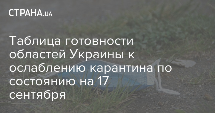 Таблица готовности областей Украины к ослаблению карантина по состоянию на 17 сентября