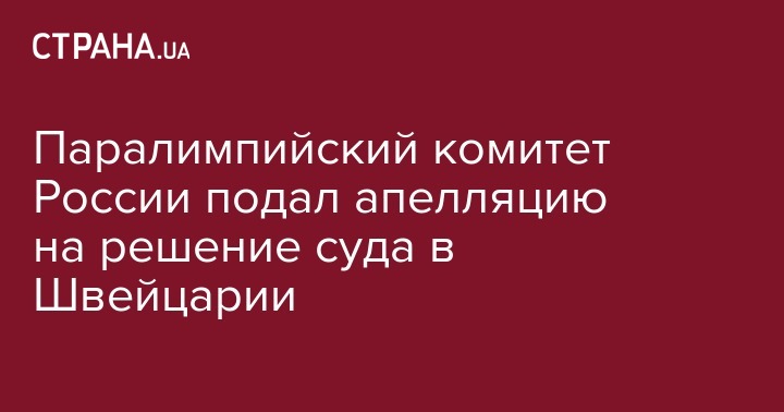 Паралимпийский комитет России подал апелляцию на решение суда в Швейцарии