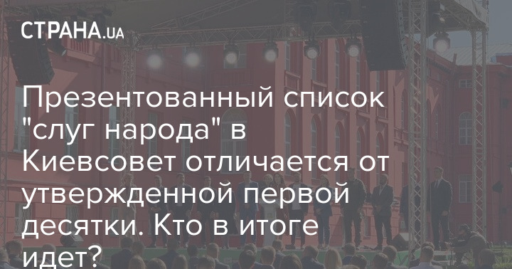 Во время конференции Киевской городской организации партии "Слуга народа", где представили кандидатов в депутаты в Киевсовет, список приглашенных на сцену и официальная первая десятка отличаются. Из-за этого в СМИ появились разночтения.