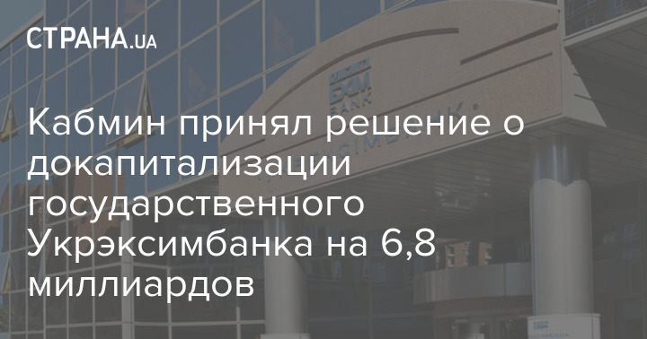 Кабмин решил докапитализировать государственный Укрэксимбанк (Киев) на 6,8 млрд грн. Об этом стало известно во время заседания правительства в среду, 23 сентября, передает "Интерфакс-Украина".