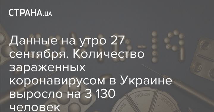 По состоянию на утро воскресенья, 27 сентября, в Украине подтвердились 3 130 новых случая заражения коронавирусом. Общее число заболевших достигло отметки в 198 634 .