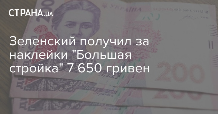 Зеленский получил за наклейки "Большая стройка" 7 650 гривен