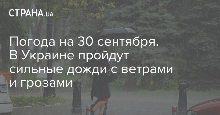 В среду, 30 сентября, в Украине существенно испортится погода. В Карпатах и Прикарпатье ожидаются сильные ливни (II уровень опасности, оранжевый). Значительные дожди так же пройдут и в центральных регионах, а также в Херсонской и Запорожской областях. В южных регионах местами грозы. Непогода будет сопровождаться порывами ветра. Об этом сообщает Укргидрометцентр.