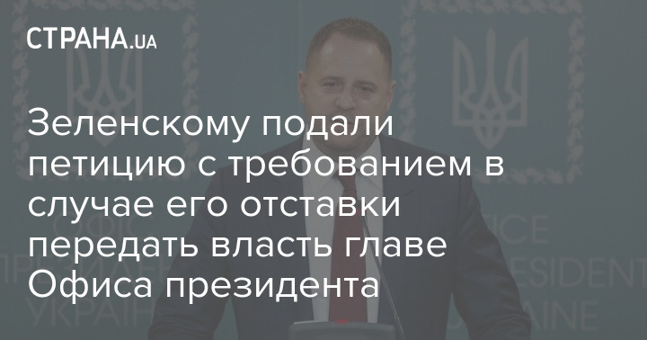 Зеленскому подали петицию с требованием в случае его отставки передать власть главе Офиса президента