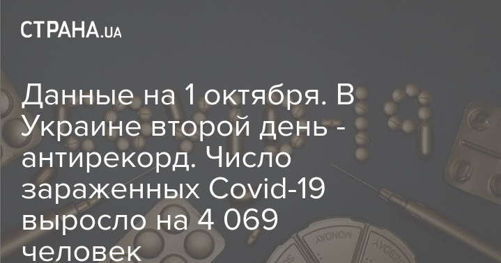Данные на 1 октября. В Украине второй день - антирекорд. Число зараженных Covid-19 выросло на 4 069 человек