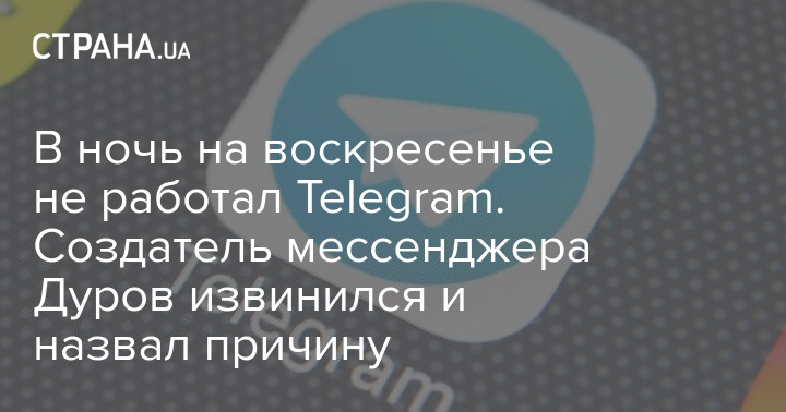 "Вчера вечером Telegram около часа не работал в Европе из-за неисправности оборудования. Некоторые пользователи iOS, которые пытались получить доступ к Telegram в течение этого времени, возможно, вышли из системы и, к сожалению, должны будут повторно войти в систему", - сказал Дуров.