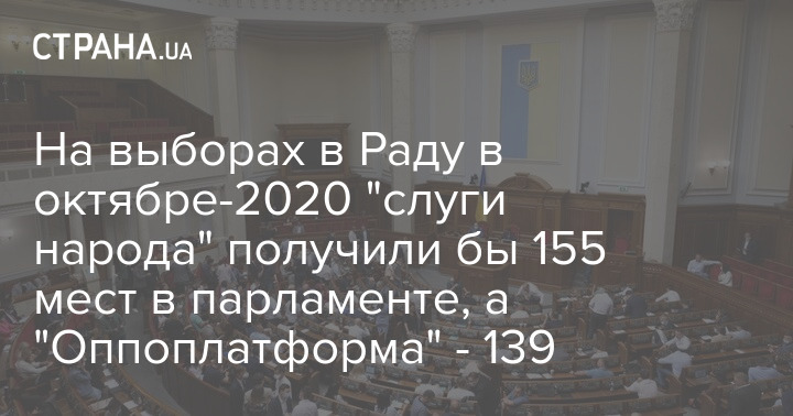 Если бы выборы в Верховную Раду состоялись бы в начале октября 2020 года, то в украинский парламент прошли бы четыре партии. Больше всего набрали бы "Слуга народа" и "Оппозиционная платформа - За жизнь". При этом разрыв между двумя лидирующими политсилами уменьшается: они набрали бы по 25,9% и 22% голосов соответственно, то есть в парламенте они бы имели 155 и 139 депутатов.