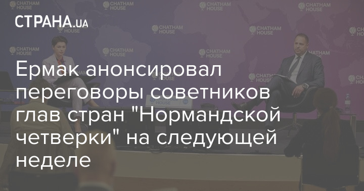 Глава Офиса президента Андрей Ермак заявил, что уже на следующей неделе могут пройти переговоры политических советников лидеров стран "Нормандской четверки", они пообщаются друг с другом в формате видеоконференции.