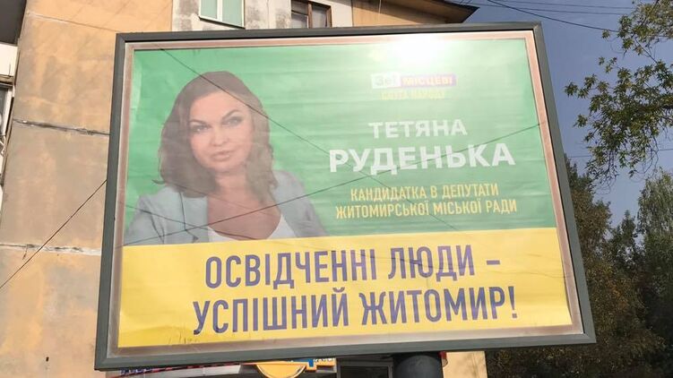 В Житомире в рекламе кандидата от партии "Слуга народа" на выборы Татьяны Руденькой обнаружили сразу две ошибки в одном слове.