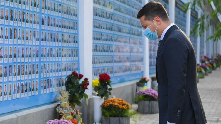 "В День защитника Украины президент Владимир Зеленский почтил память воинов, погибших во время военных действий за независимость нашего государства. Глава государства возложил цветы к Стене памяти на Михайловской площади в Киеве", - говорится в сообщении.