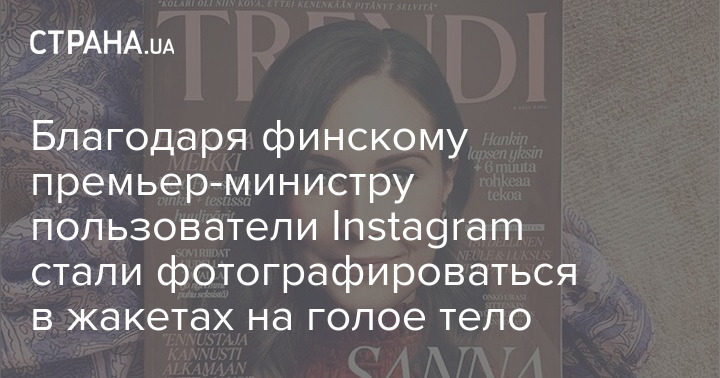 Премьер-министр Финляндии Санна Марин, занявшая эту должность чуть менее года назад, снялась для глянцевого журнала Trendi в черном жакете на голое тело. Снимок вызвал бурные дискуссии в соцсетях.