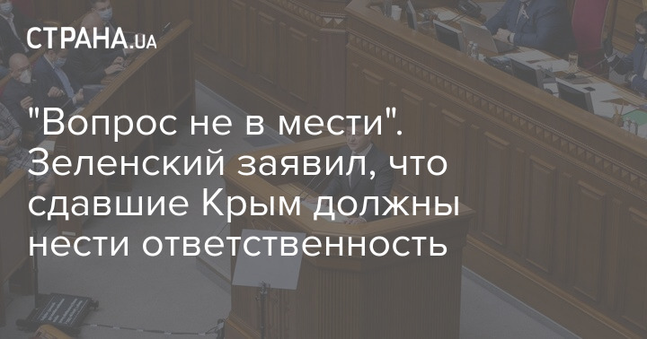 "Те, кто без боя отдал Крым, должны нести ответственность. Вопрос не в мести, а в справедливости", - заявил Владимир Зеленский, обращаясь к народным депутатам в Раде.