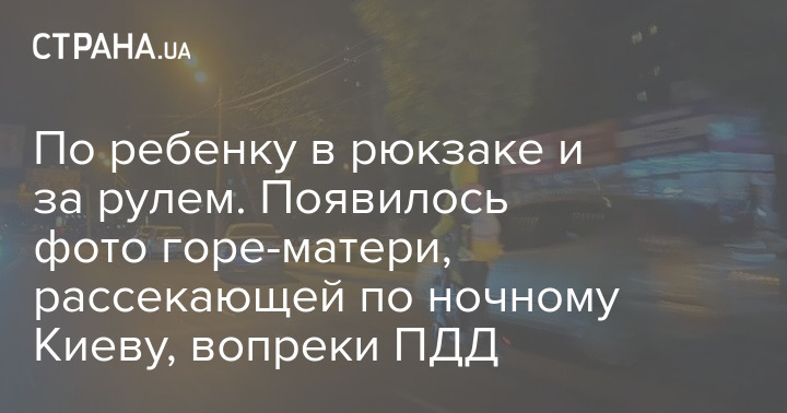 По ребенку в рюкзаке и за рулем. Появилось фото горе-матери, рассекающей по ночному Киеву, вопреки ПДД