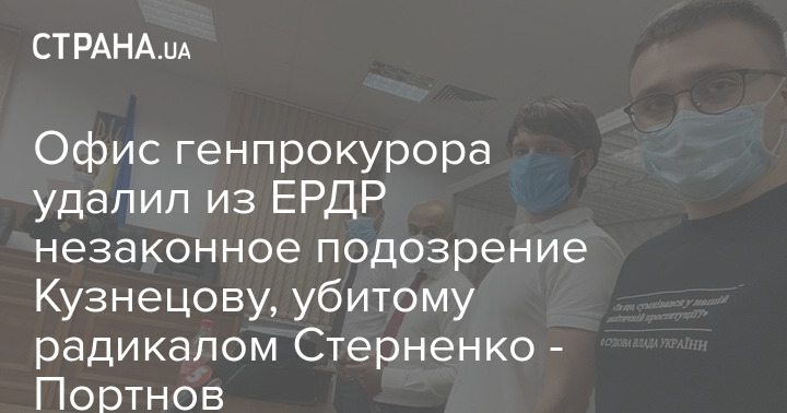 "Информирую, что на основании выигранных нами в судах первой и апелляционной инстанциях дел об отмене подозрения, посмертно вынесенного Ивану Кузнецову, погибшему от рук убийцы, уроженца одесской области гр. Стерненко, 1995 г.р, обвиняемого в умышленном убийстве и других корыстных и насильственных преступлениях, офис Генерального прокурора исключил вчера информацию об этом подозрении из единого реестра досудебных расследований", - сообщил Портнов.