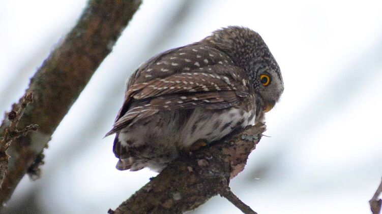 Сотрудники Чернобыльского заповедника показали фото воробьиного сыча, который является самым маленьким представителем сов в Украине. Средняя сыч-воробей может поместиться в ладони взрослого человека и весит около 80 грамм, поэтому постоянно вынужден прятаться от хищников побольше.