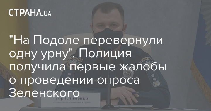 Глава Национальной полиции Игорь Клименко заявил, что в правоохранительные органы начали поступать жалобы от граждан, которые касаются проведения опроса, инициированного президентом Владимиром Зеленским.