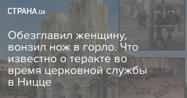 70-летнему пенсионеру он воткнул нож в горло, женщину обезглавил. Еще одного человека он догнал на выходе из собора и тоже убил. А затем ранил еще двоих. Информацию подтверждает мэр Ниццы.