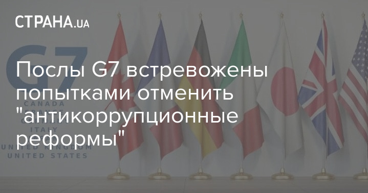 Послы стран "Большой семерки" (G7) в Украине обеспокоены из-за попыток отменить "антикоррупционные реформы" в стране.