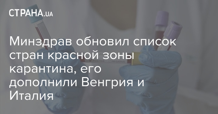 Венгрия и Италия из зеленой карантинной зоны перекочевали в красную, об этом свидетельствуют данные на сайте Министерства здравоохранения по состоянию на 30 октября.