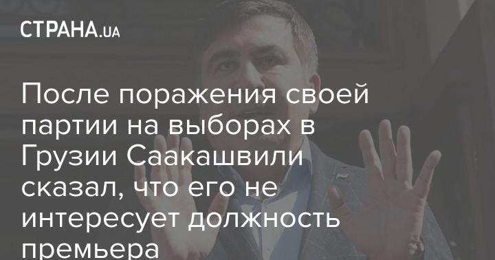 Бывший президент Грузии и глава исполкома Нацсовета реформ Украины Михаил Саакашвили, партия которого, "Единое национальное движение", терпит поражение на парламентских выборах, заявил, что его не интересует должность главы грузинского правительства.