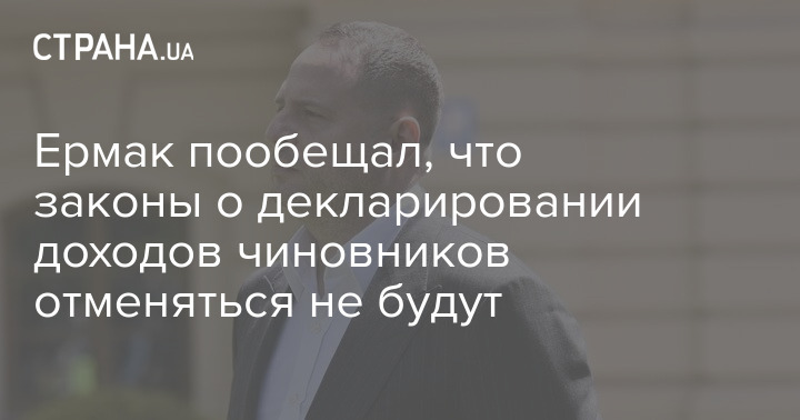Ермак пообещал, что законы о декларировании доходов чиновников отменяться не будут