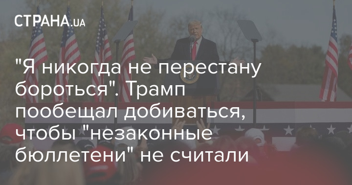 Президент США Дональд Трамп заявил, что "не перестанет бороться" за американцев. А в его штабе обещают продолжать добиваться подсчета "законных" избирательных бюллетеней и против "незаконных".