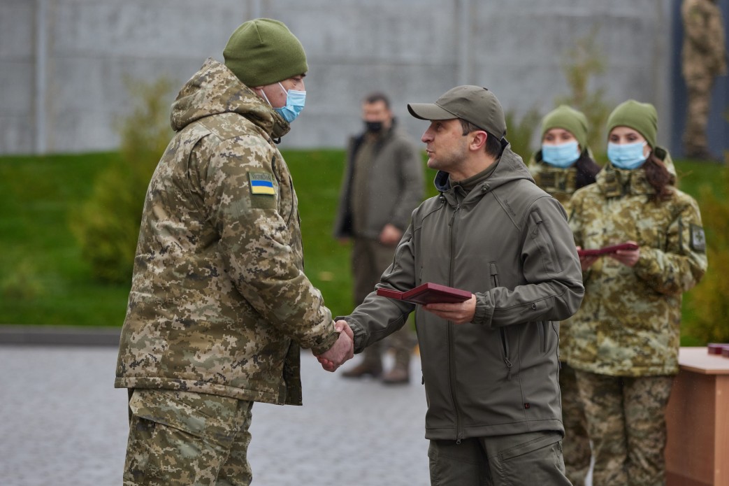 Вчера Зе побывал на пункте пропуска "Рассыпное" в Луганской области, на границе с Россией. Там он вручал награды пограничникам. Президент был без маски и перчаток, на фото видно, как он пожимает руку военному.