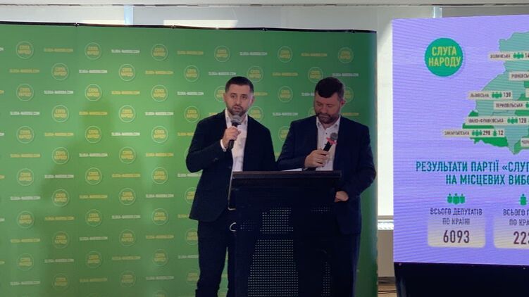 Александр Корниенко и Давид Арахамия подвели итоги местных выборов для "Слуги народа". Фото: "Страна"