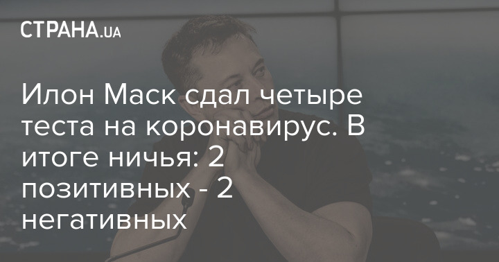 Илон Маск сдал четыре теста на коронавирус. В итоге ничья: 2 позитивных - 2 негативных