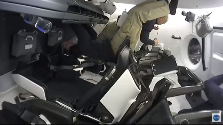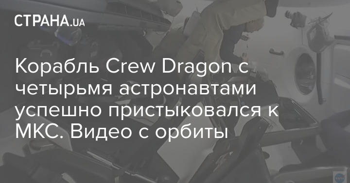 Экипаж Crew Dragon уже на борту МКС, скриншот видео