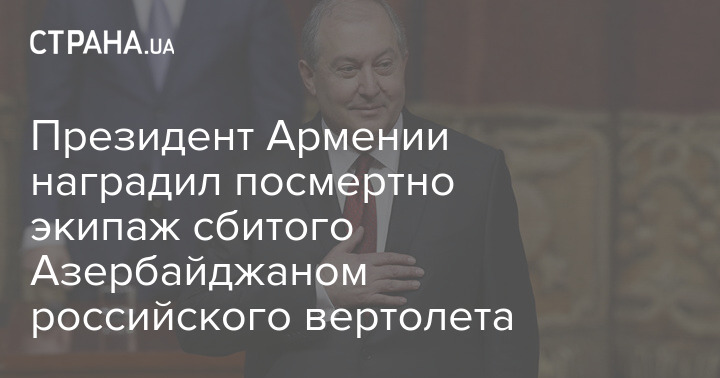 Армянский президент Армен Саркисян наградил медалями "За боевую службу" экипаж российского вертолета Ми-24, сбитого Азербайджаном на территории Армении.