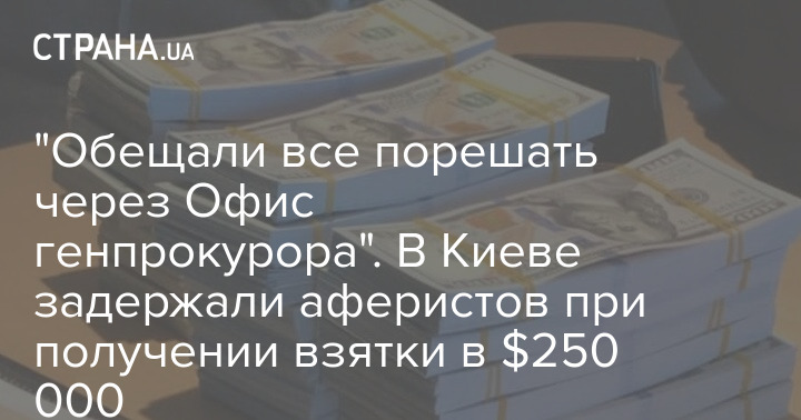 В Киеве задержали двух мошенников при получении взятки в $250 тысяч. Фото: facebook.com/pgo.gov.u