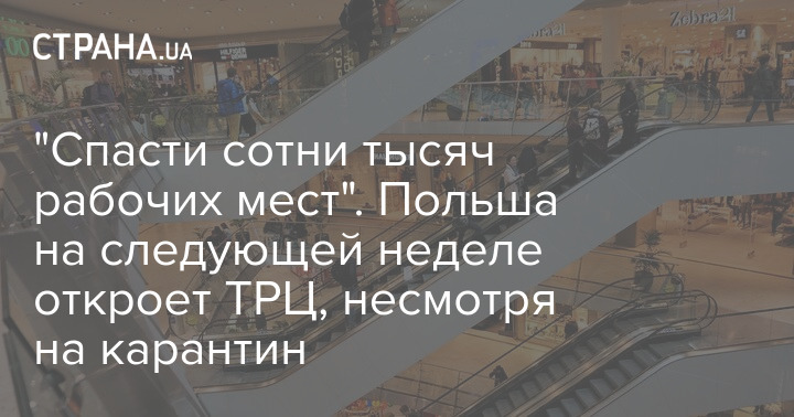"Спасти сотни тысяч рабочих мест". Польша на следующей неделе откроет ТРЦ, несмотря на карантин
