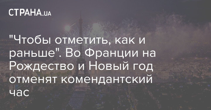 Комендантский час во Франции, который действует с октября, отменят в виде исключения в Новогоднюю ночь и на Рождество.