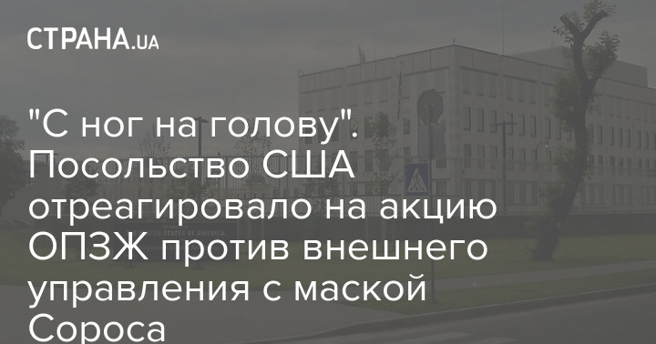 "С ног на голову". Посольство США отреагировало на акцию ОПЗЖ против внешнего управления с маской Сороса