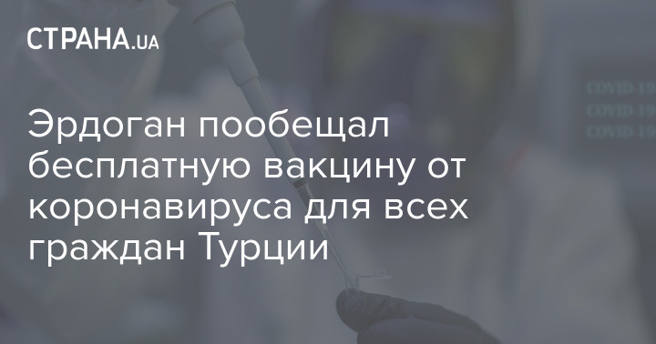 Президент Турции Реджеп Эрдоган заявил, что все граждане страны будут иметь возможность получить бесплатную вакцину от коронавирусной инфекции.